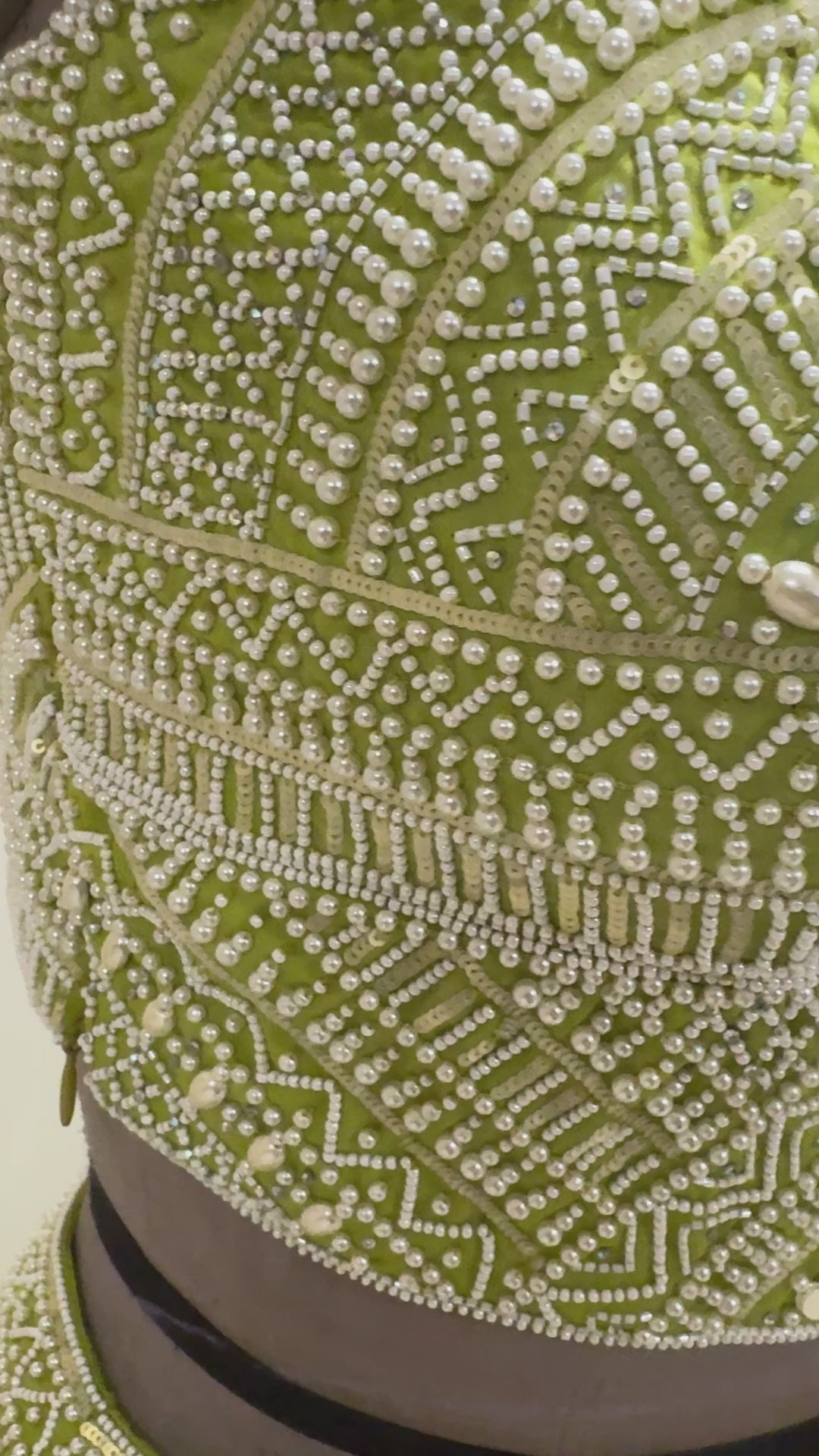 Parrot Green double layer draped lehenga with hand embroidered corset and ruffled palla